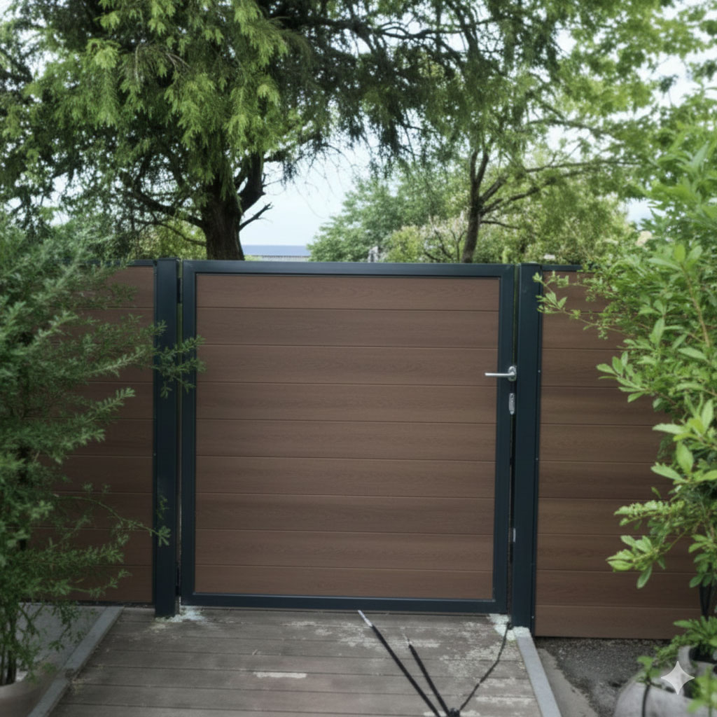 Nous travaillons le « Corten » pour un rendu unique sur tout support (portail, clôture, mur…).